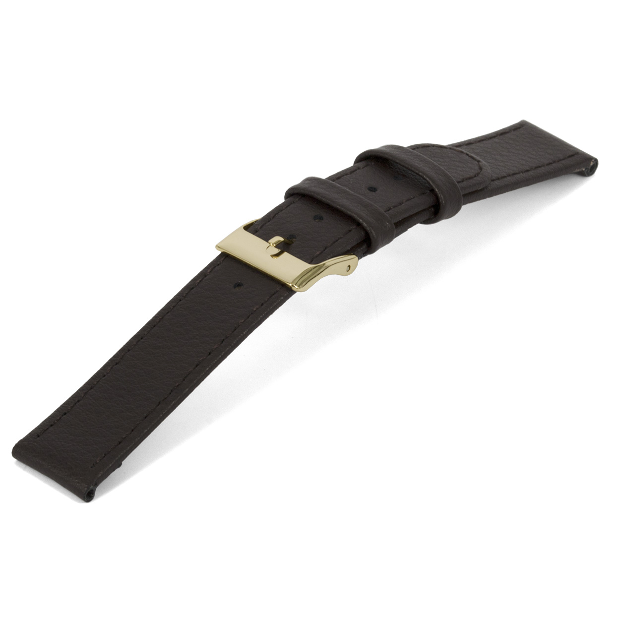 Bruin lederen horlogeband met goudkleurig edelstaal gesp.