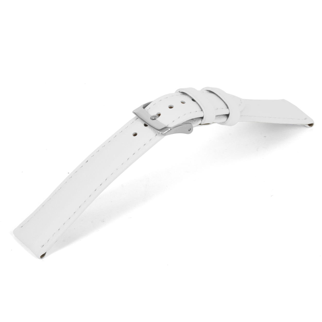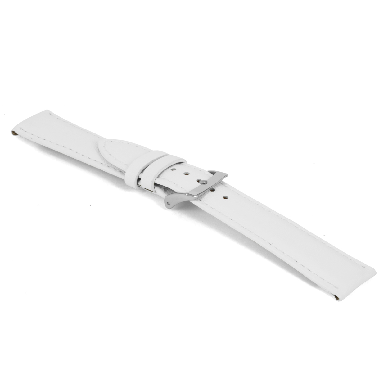 Wit lederen horlogeband met zilverkleurig edelstalen gesp.