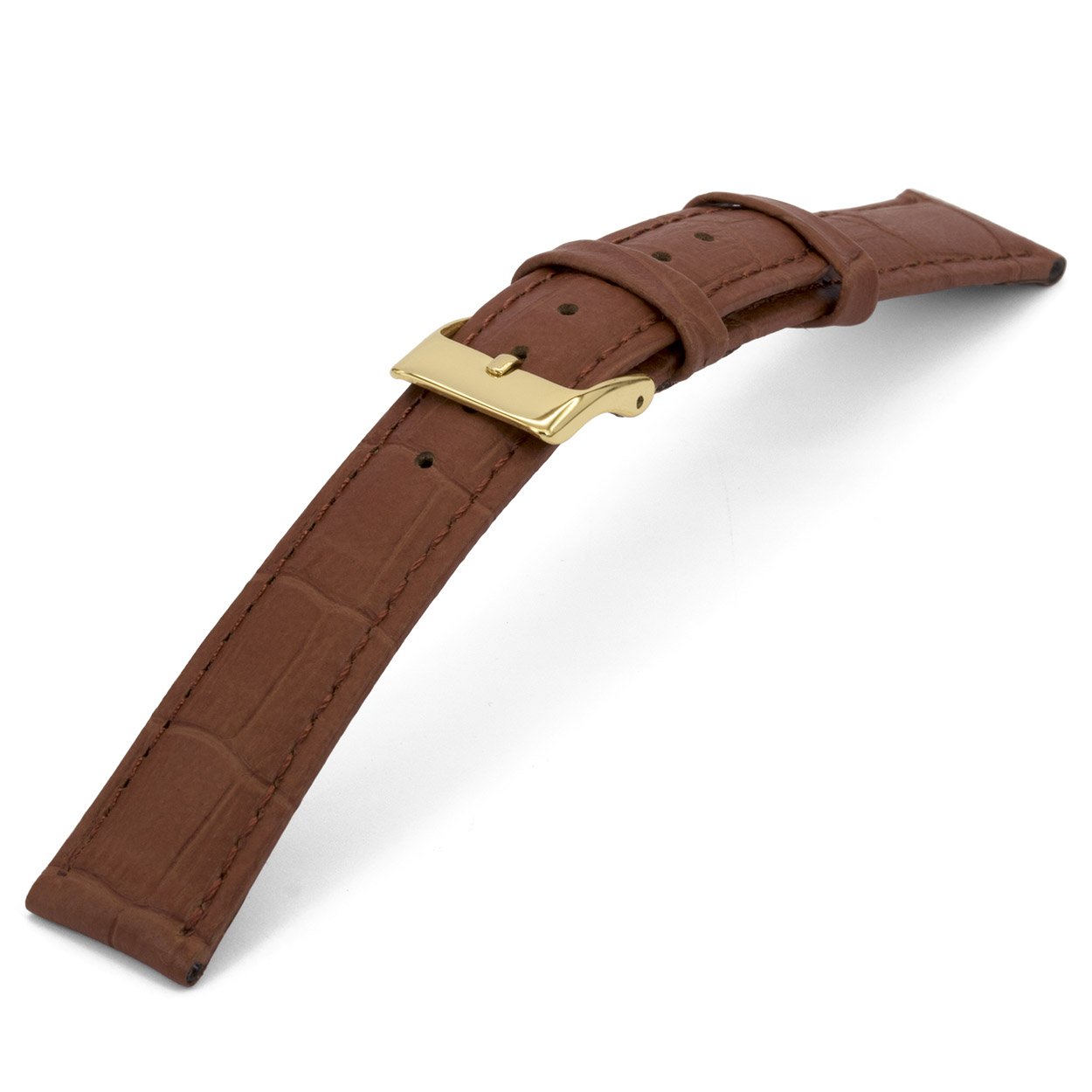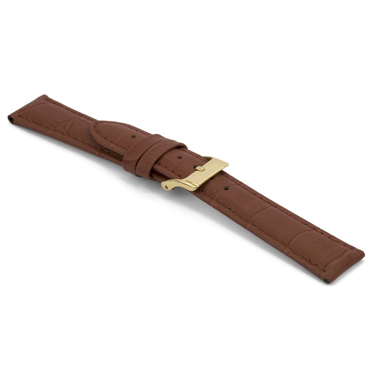 Bruin lederen horlogeband met goudkleurig edelstalen gesp.
