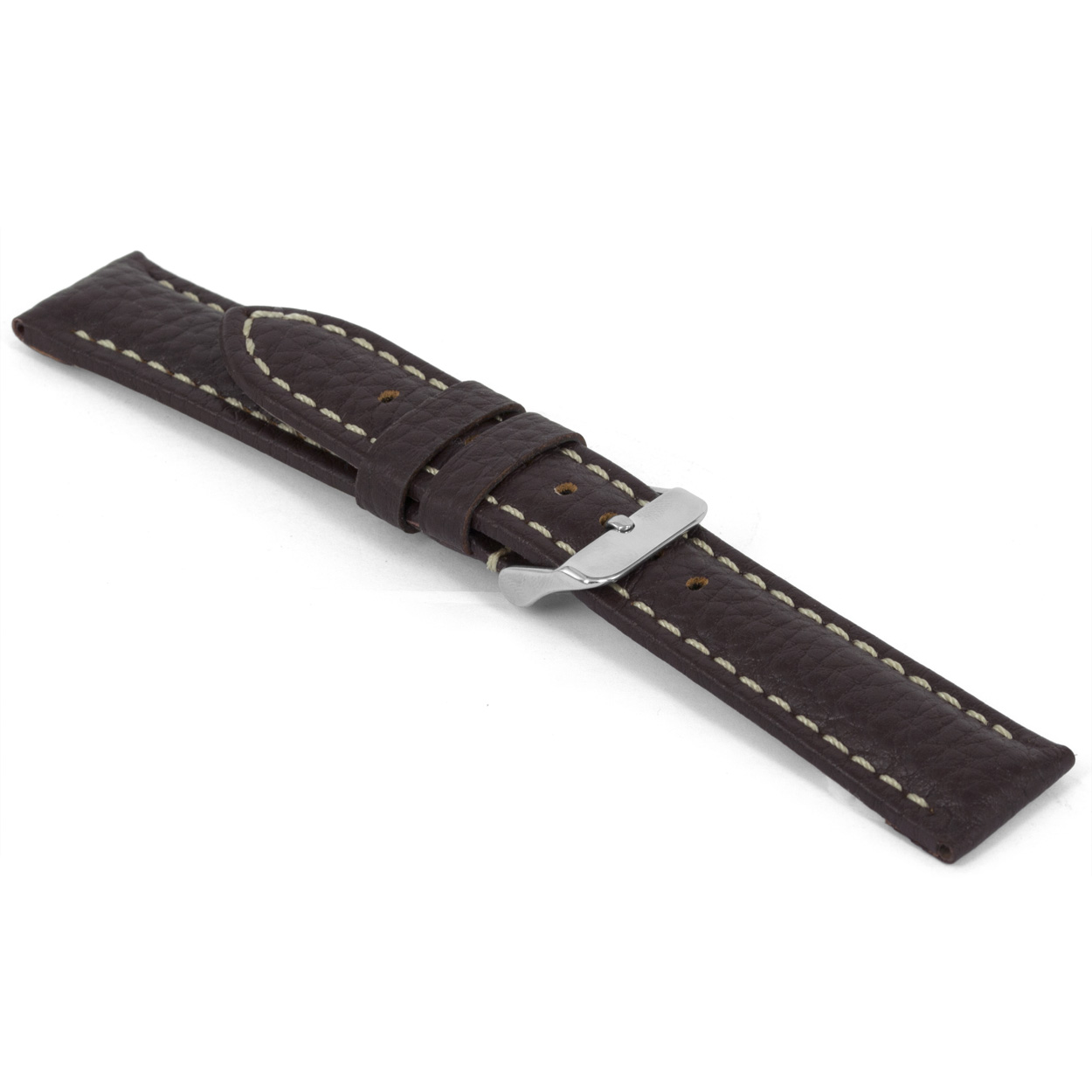 Kalfslederen horlogeband met zilverkleurig edelstalen gesp.