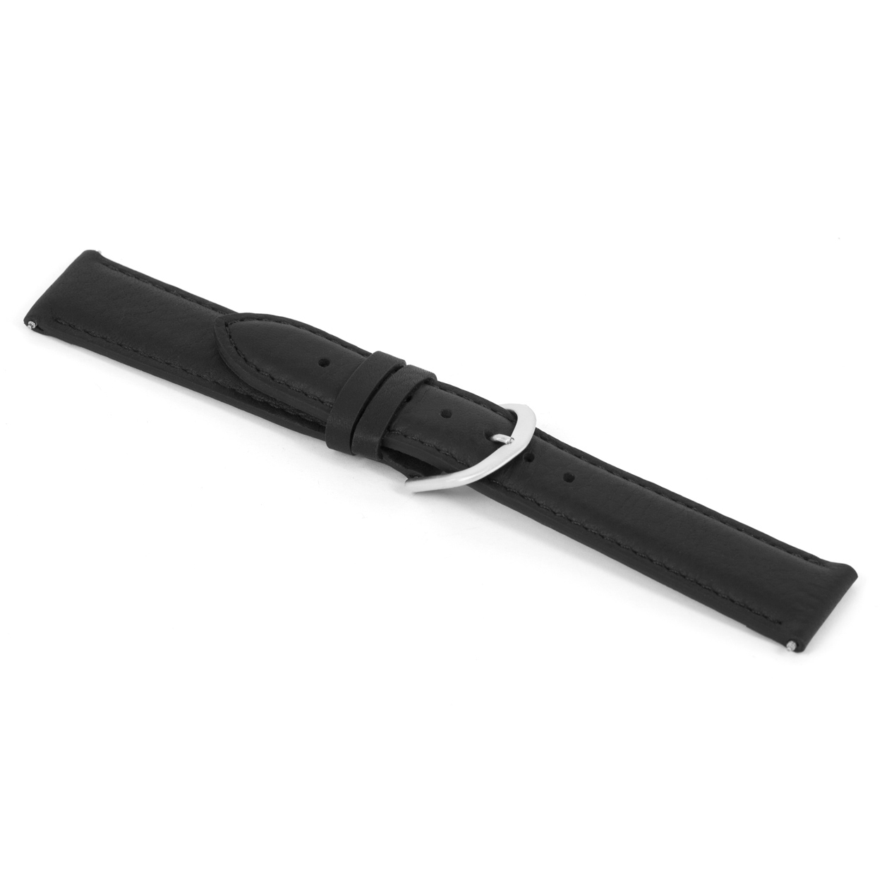 Hoogwaardig lederen horlogeband, zwart, glad en gestikt.
