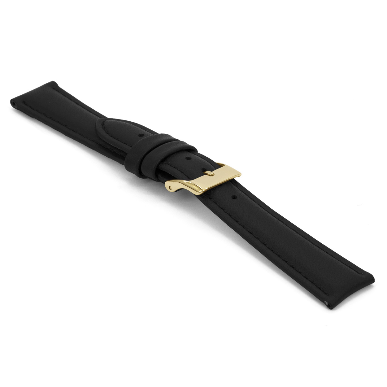 Zwart lederen horlogeband licht gevuld met zilvergoudkleurig aluminium gesp.