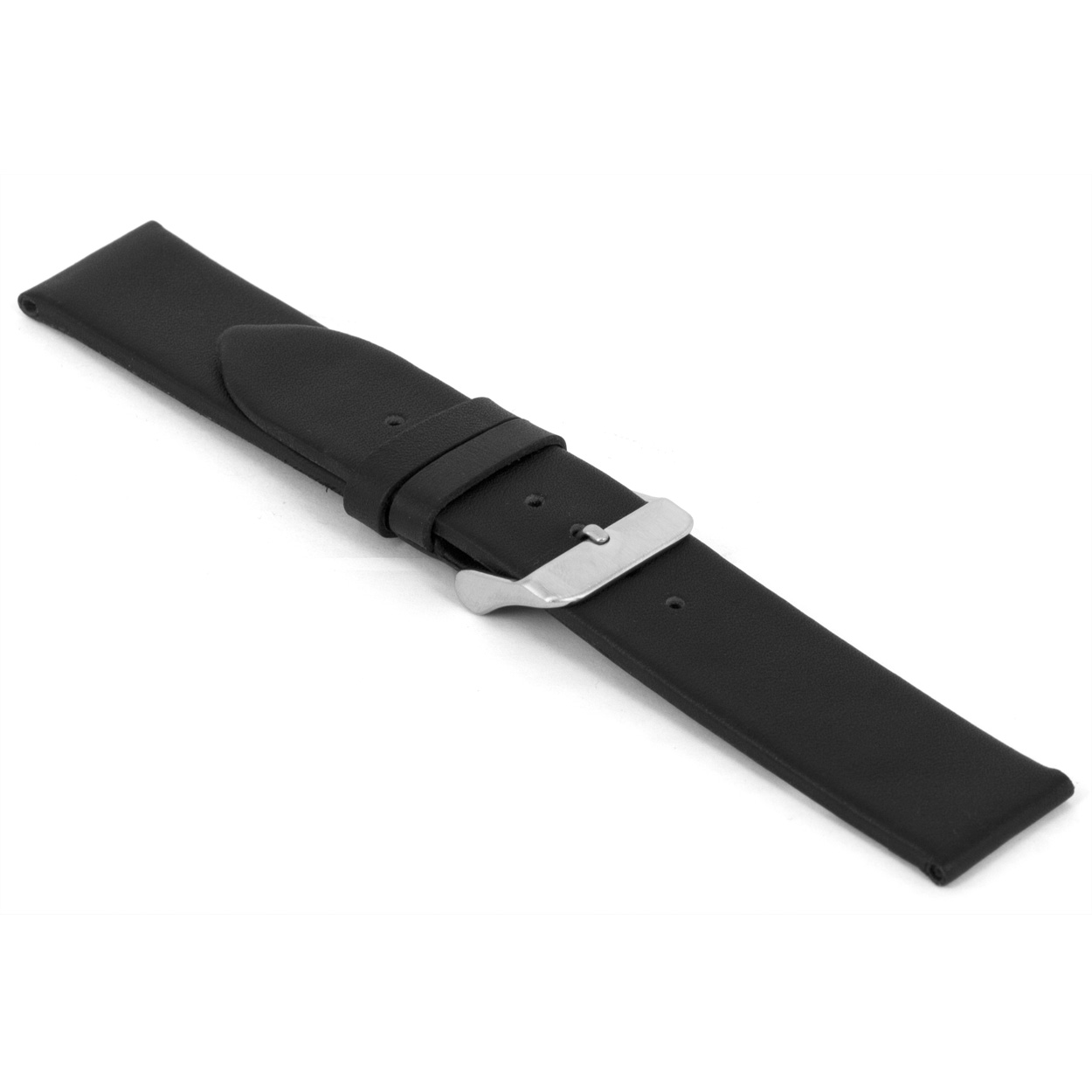 Zwarte kalfslederen horlogeband waterdicht met zilverkleurig edelstalen gesp.