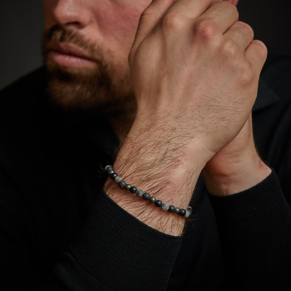 Armband van het merk Rebel & Rose. De armband heeft een hoogwaardige elastische stretch koord, met 6mm van Onyx, Larvikiet, Lava, Hematiet.
