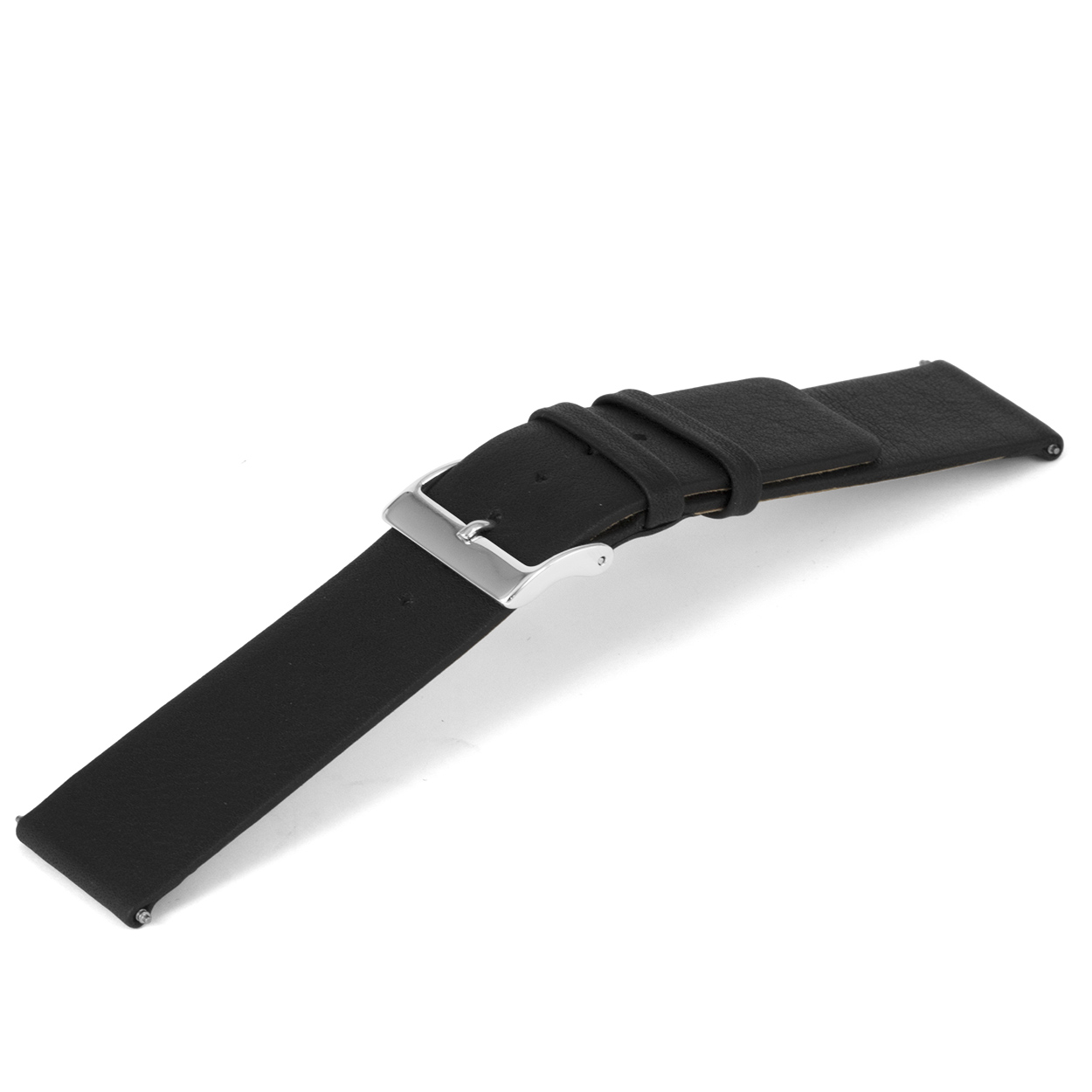 Kalfslederen horlogeband zwart glad en ongestikt.