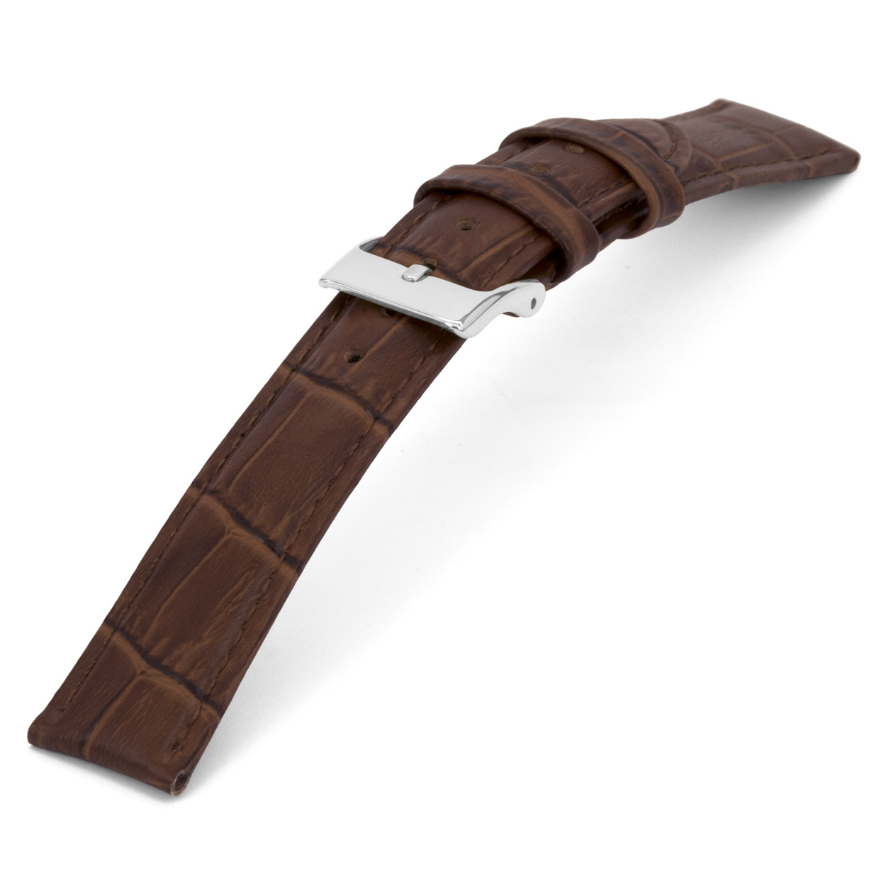 Bruin lederen horlogeband met zilverkleurig edelstalen gesp.