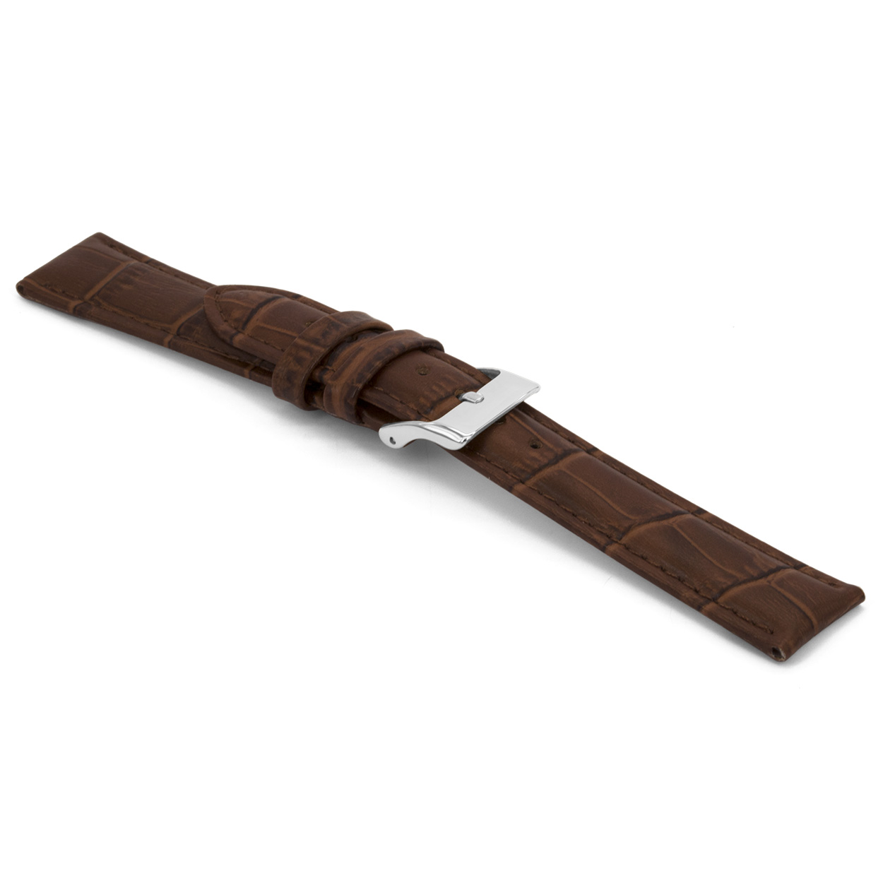 Bruin lederen horlogeband met zilverkleurig edelstalen gesp.