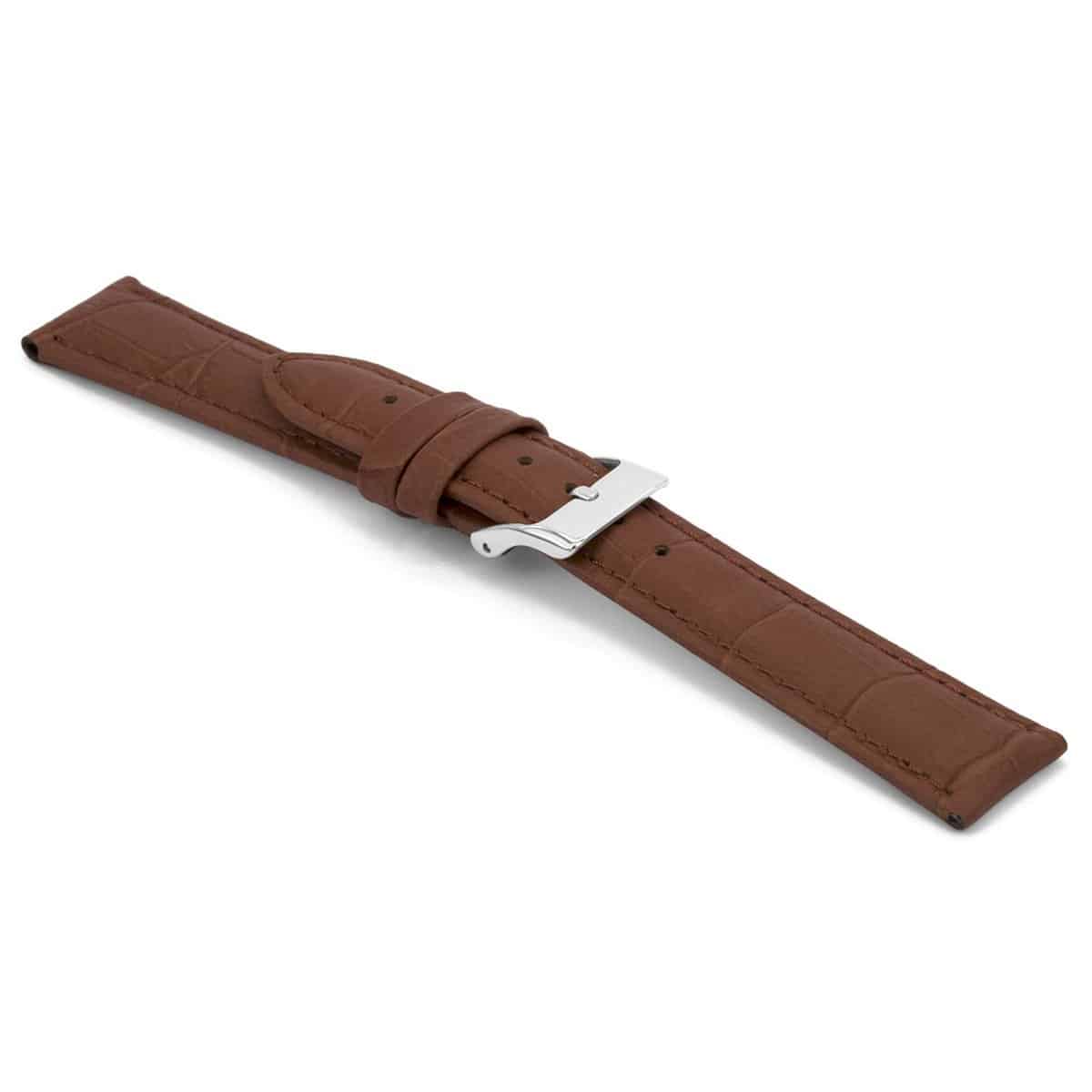 Bruin lederen horlogeband met zilverkleurig stainless steel gesp.