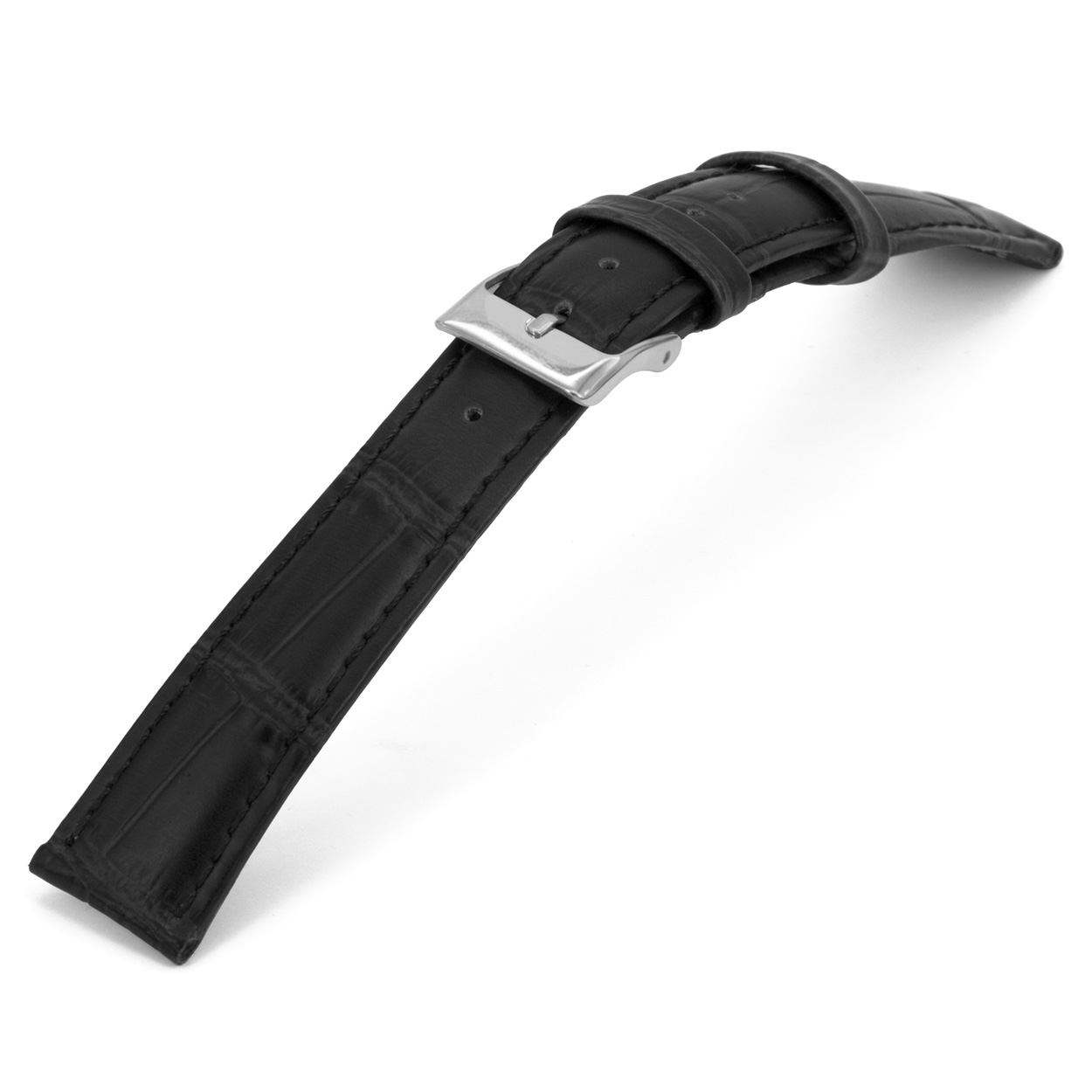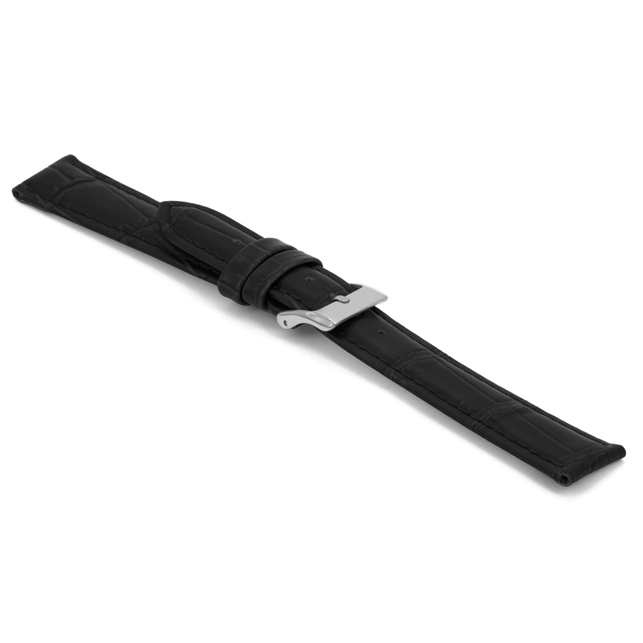 Italiaans lederen horlogeband extra lang, zwart, glad en gestikt.