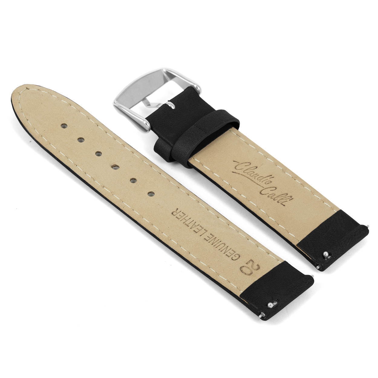 Kalfslederen horlogeband, oily zwart en beige gestikt.