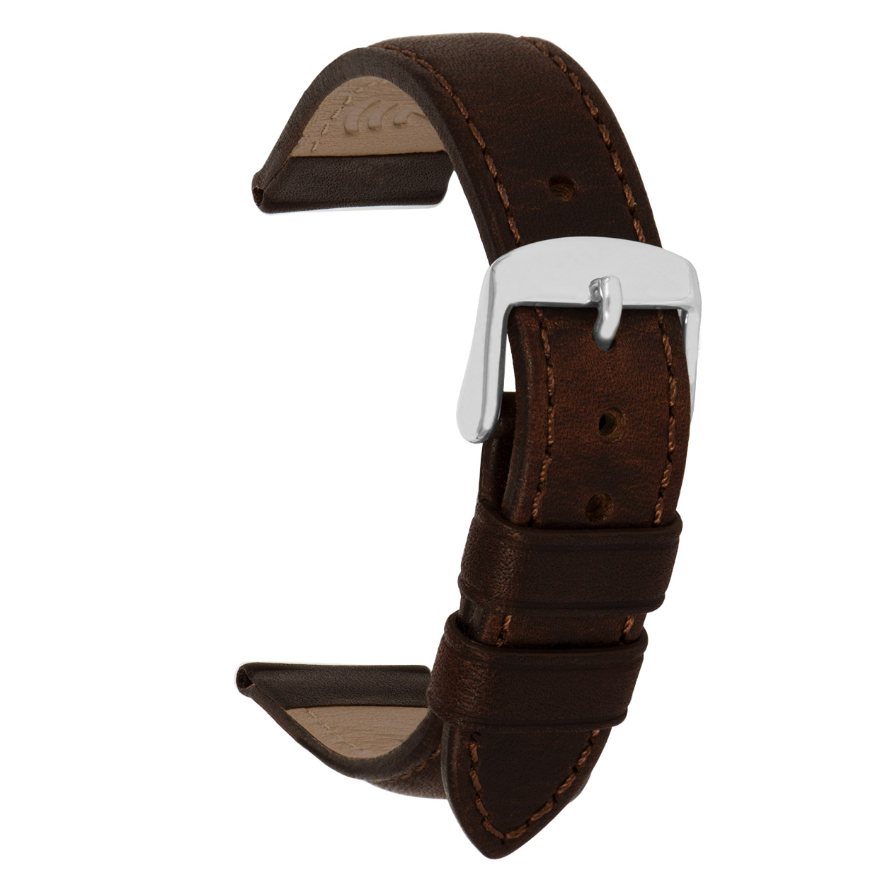 Bruine olie cowhide lederen horlogeband met zilverkleurig edelstalen gesp.