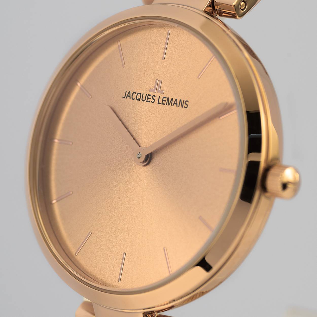 Dit dameshorloge is van het merk JACQUES LEMANS. Het is een horloge met een band gemaakt van Milanees. De diameter van de kast is 34mm.