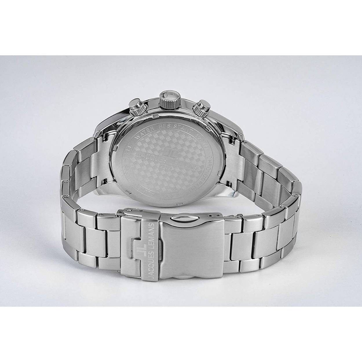 Dit heren horloge is van het merk JACQUES LEMANS. Het is een horloge met een band gemaakt van RVS. De diameter van de kast is 43 mm.
