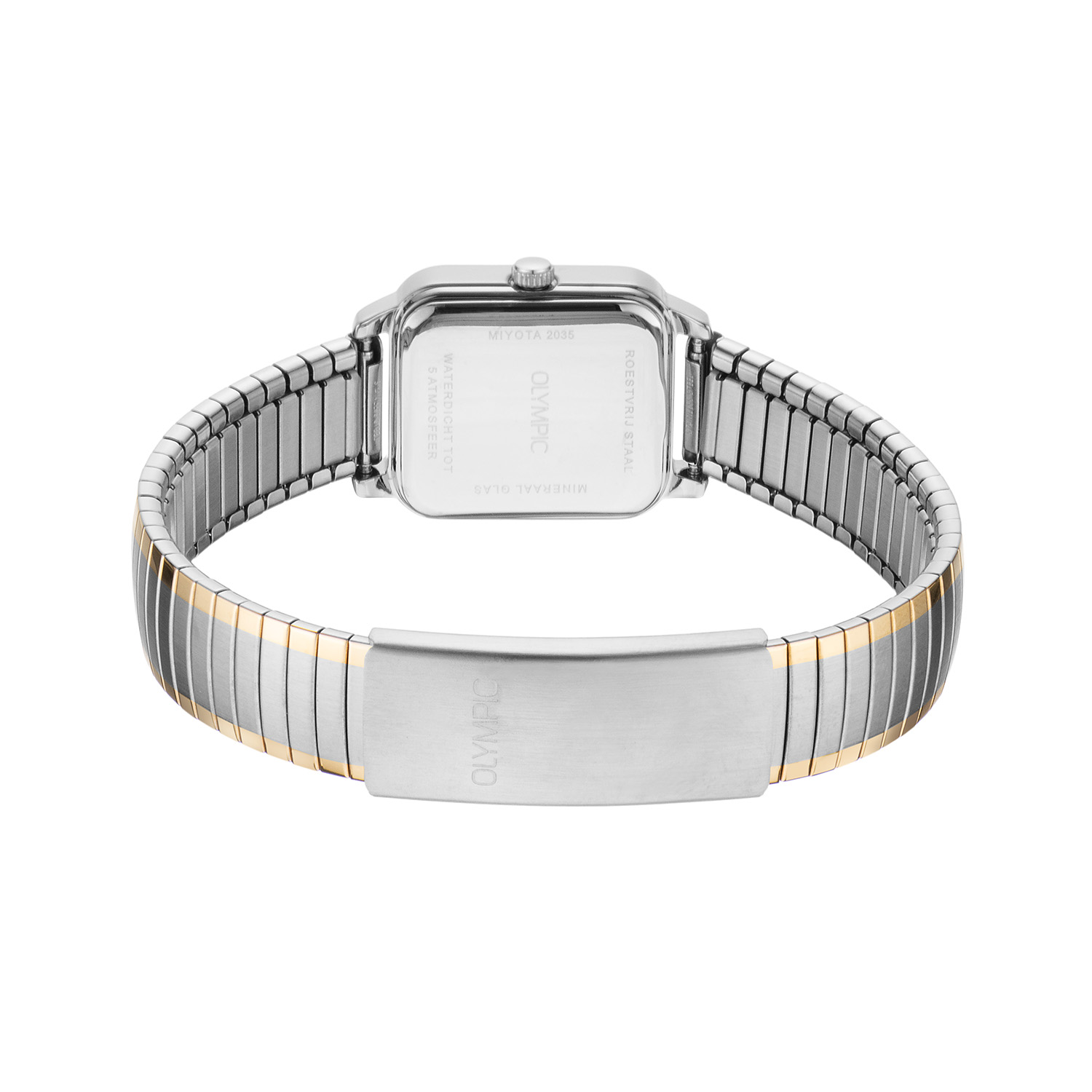 Dit unieke Olympic horloge met artikelnummer: OL26DSS142B is een klassiek dameshorloge. Het stalen rechthoekige kastje heeft witte wijzerplaat met zwarte arabische cijfers en wijzers. Aan het horloge zit een bi-color rekband. Het horloge heeft een mineraalglas, een afmeting van 20.4 bij 23.4 mm en is 5 ATM.