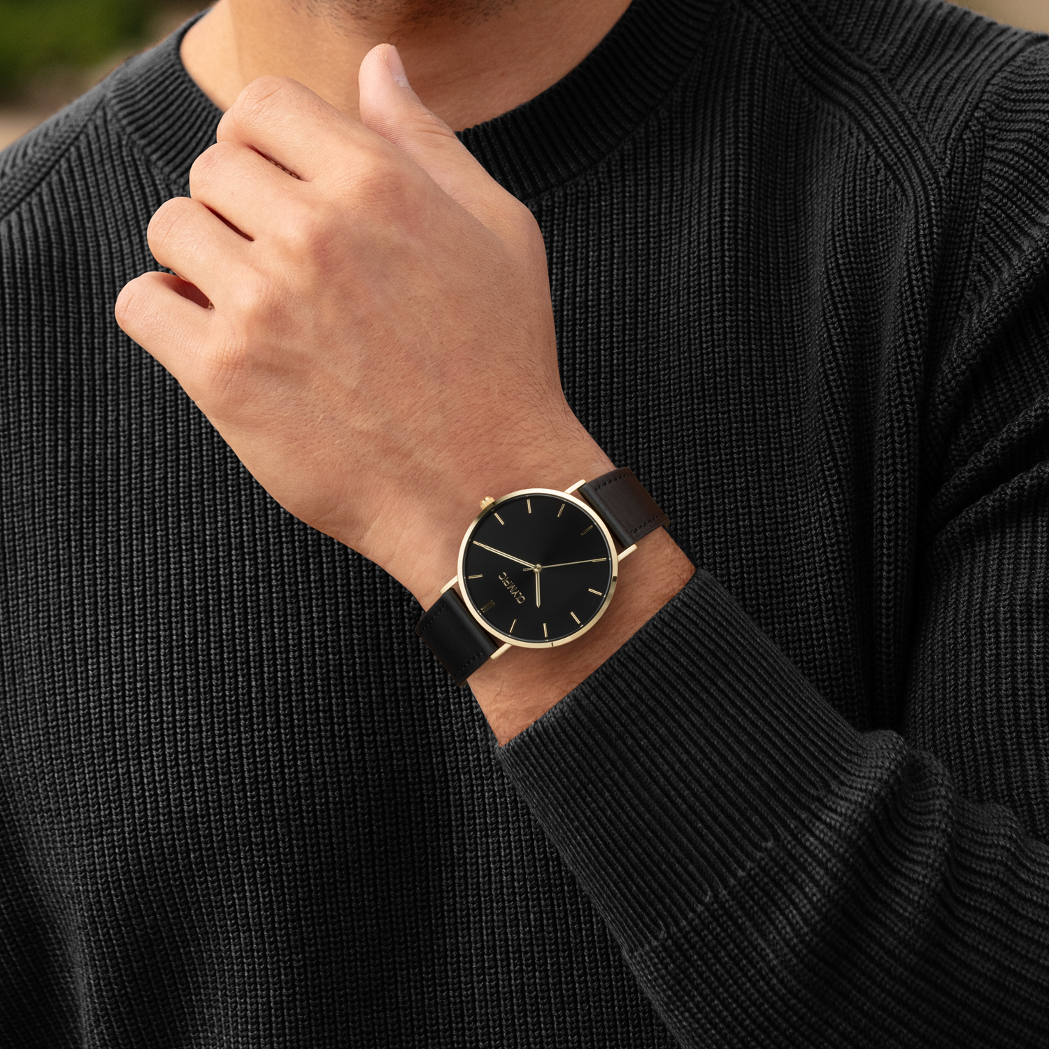 Dit unieke Olympic horloge met artikelnummer: OL66HDL012 is een stijlvol klassiek herenhorloge. De stalen goudkleurige kast heeft een gladde bezel en een zwarte wijzerplaat. De uursaanduiding is verfijnd door de strakke wijzers en de dunne streepjes op de uren. Dit geeft het horloge een chique uiterlijk. Aan de stalen kast zit een gladde zwarte lerenband met een gespsluiting. Het horloge heeft een mineraalglas, een doorsnee van 42mm en is 5ATM.