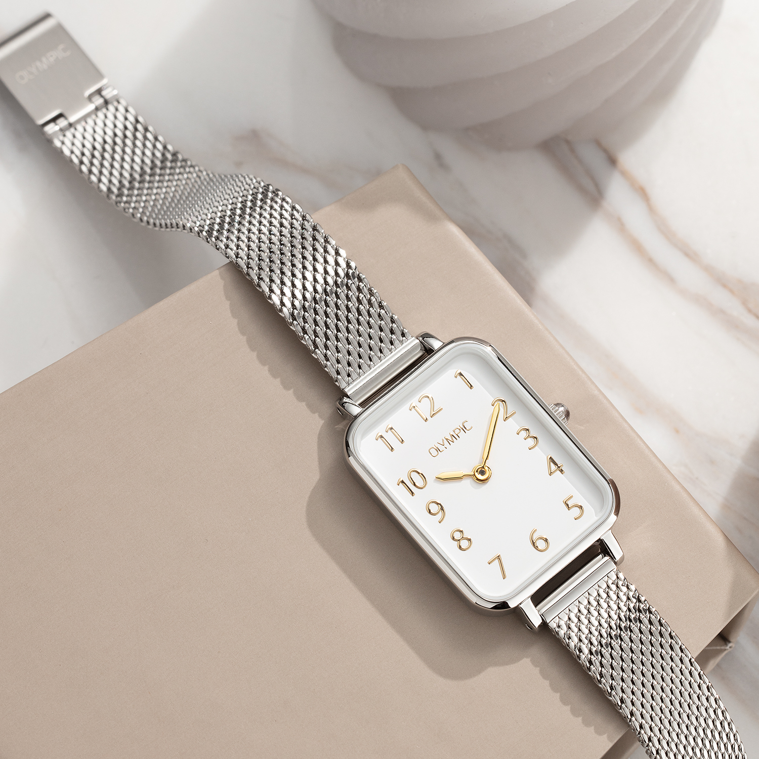 Dit unieke Olympic horloge met artikelnummer: OL66DSS023 is een stijlvol dameshorloge. De zilverkleurige rechthoekige stalen kast heeft een gladde bezel en een witte wijzerplaat. De uursaanduiding is verfijnd door de strakke wijzers en de arabische cijfers. Dit geeft het horloge een chique uiterlijk. Aan de stalen kast zit een fijne zilverkleurige milanese band met een druksluiting. Het horloge heeft een mineraalglas, een afmeting van 20x26mm en is 3ATM.