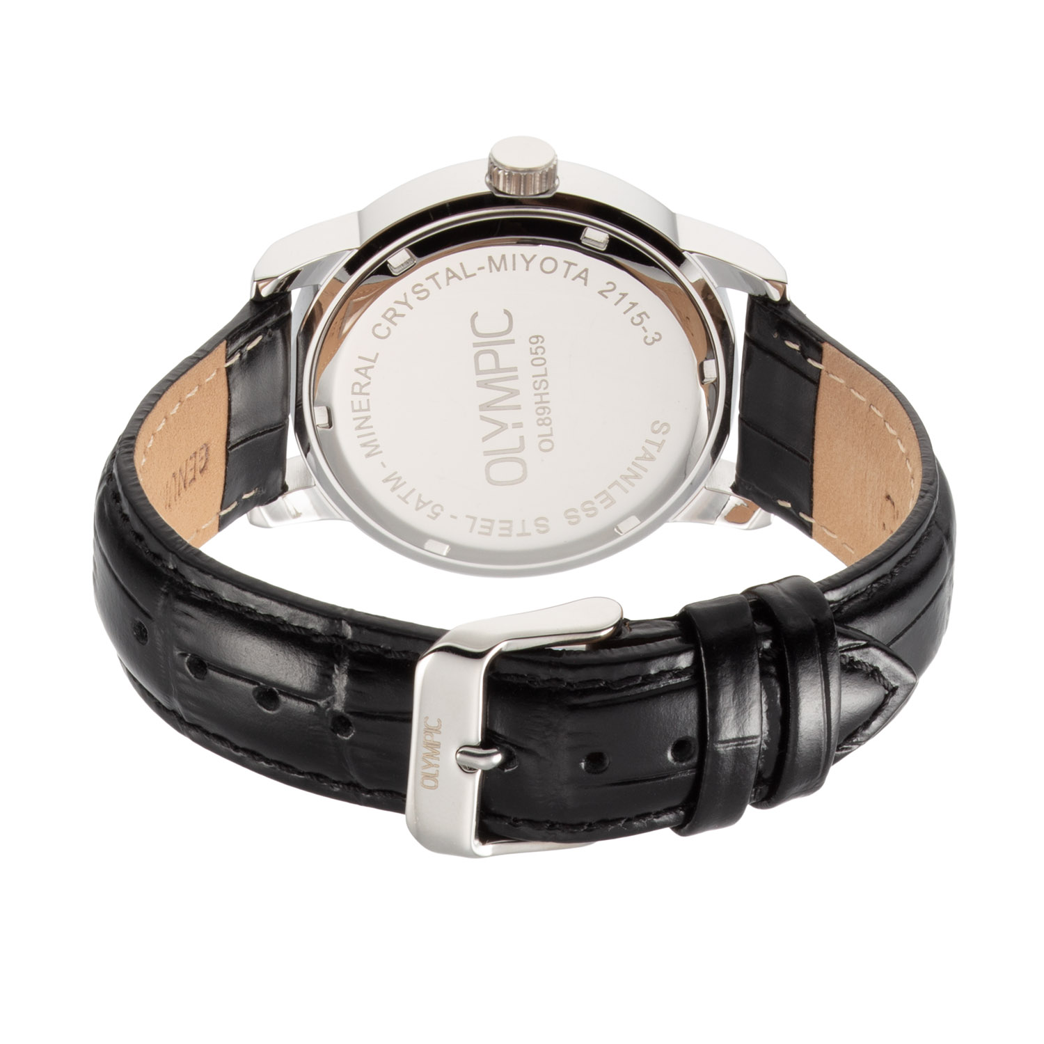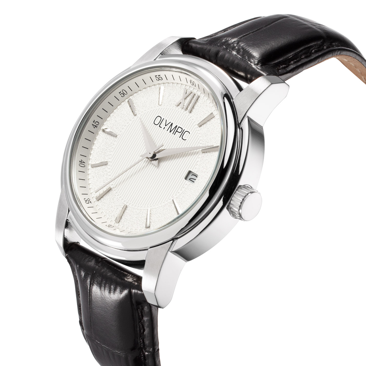 Dit unieke Olympic horloge met artikelnummer: OL89HSL058 is een classic herenhorloge. Het horloge heeft een ronde stalen kast met een crème bewerkte wijzerplaat met streepjes als uursaanduiding en een datum. Aan de kast zit een zwarte krokoprint lerenband met een gespsluiting. Het horloge heeft een mineraalglas, een doorsnee van 39mm en is 5ATM.