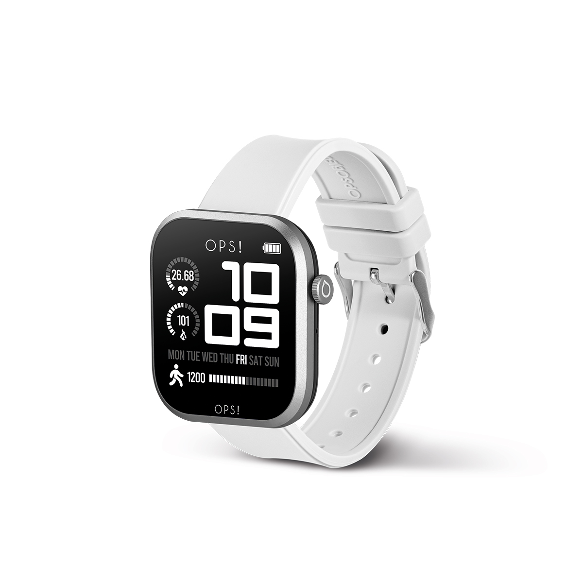 De OPS!SMART CALL PRO (modelnummer OPSSW-54) is een innovatieve polshorloge van een niet nader genoemd merk. Met een zilveren en zwarte kast van aluminium en een witte siliconen band, biedt het een datumfunctie. Draag het dagelijks om uw pols voor een stijlvolle en functionele uitstraling. Perfect voor zowel casual als zakelijke gelegenheden.