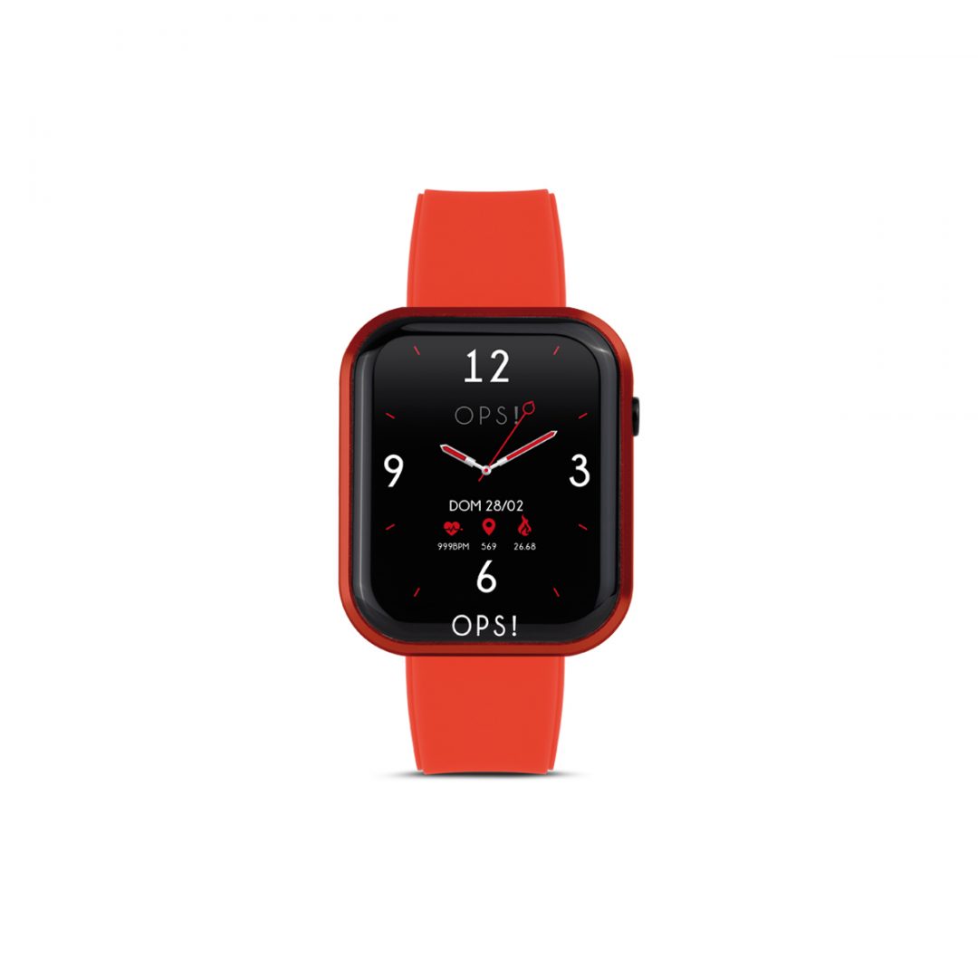 Smartwatch with aluminum and ABS case and silicone strap. Case dimensions 44x37x13 mm with 1.83” color full touch display. Band inner circumference: 180mm to 140mm. Steel buckle clasp.