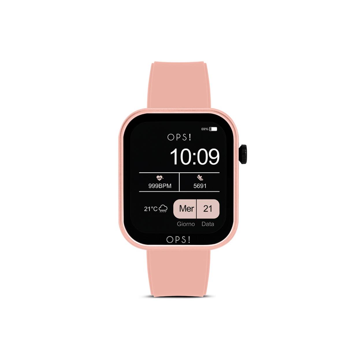 Smartwatch with ABS case and hypoallergenic silicone strap. Case dimensions 40x44x10.7 mm with 1.83″ color full touch display. Inner circumference of the strap: 180mm to 140mm. Steel pin clasp.