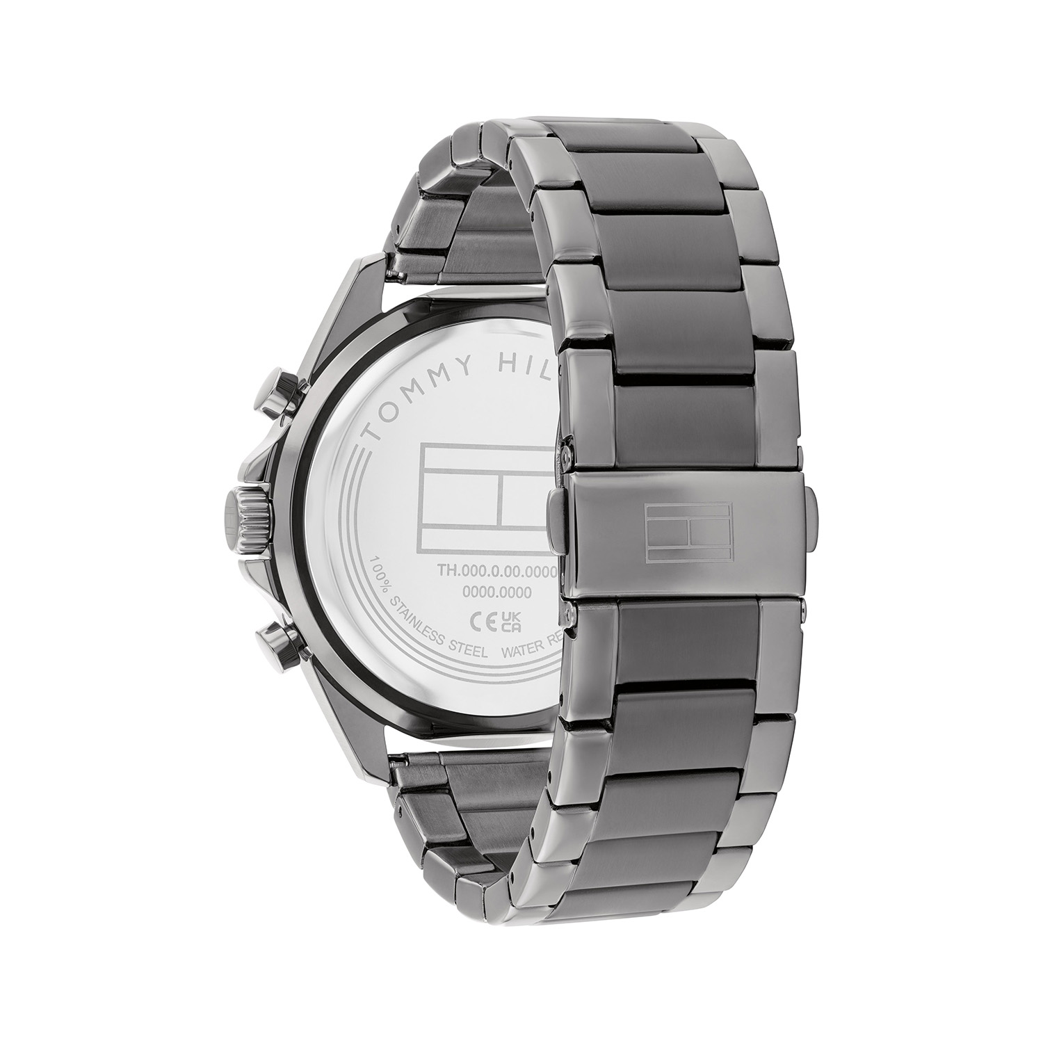 Dit specifieke horloge van Tommy Hilfiger uit de Jax serie met artikelnr: TH1710657 is een luxe herenhorloge die niet in je collectie mag ontbreken. Het stalen herenhorloge heeft een ronde grijze kast met een matte bezel en een grijze dubbele wijzerplaat met dag, datum en 24-uursaanduiding. Aan de kast zit een grijze mat glanzende schakelband met vouwsluiting. Het horloge heeft een mineraalglas, een doorsnee van 48mm en is 5ATM.