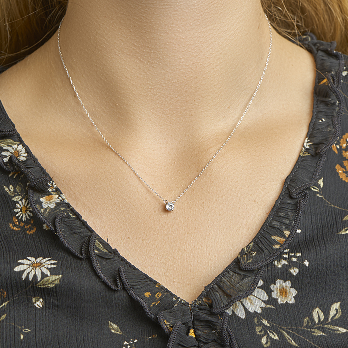 Gerhodineerd zilveren collier met zirkonia en een poli afwerking. De lengte bedraagt 41cm met 4cm extensie en de schakelbreedte bedraagt 1.2mm.