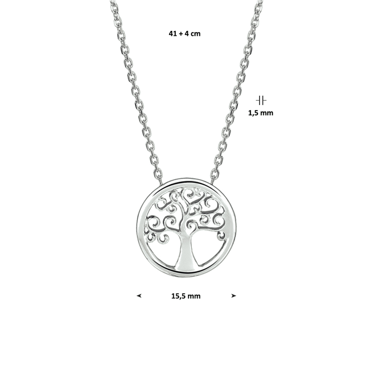 Gerhodineerd zilveren collier met een levensboom. De lengte bedraagt 41cm met 4cm extensie.