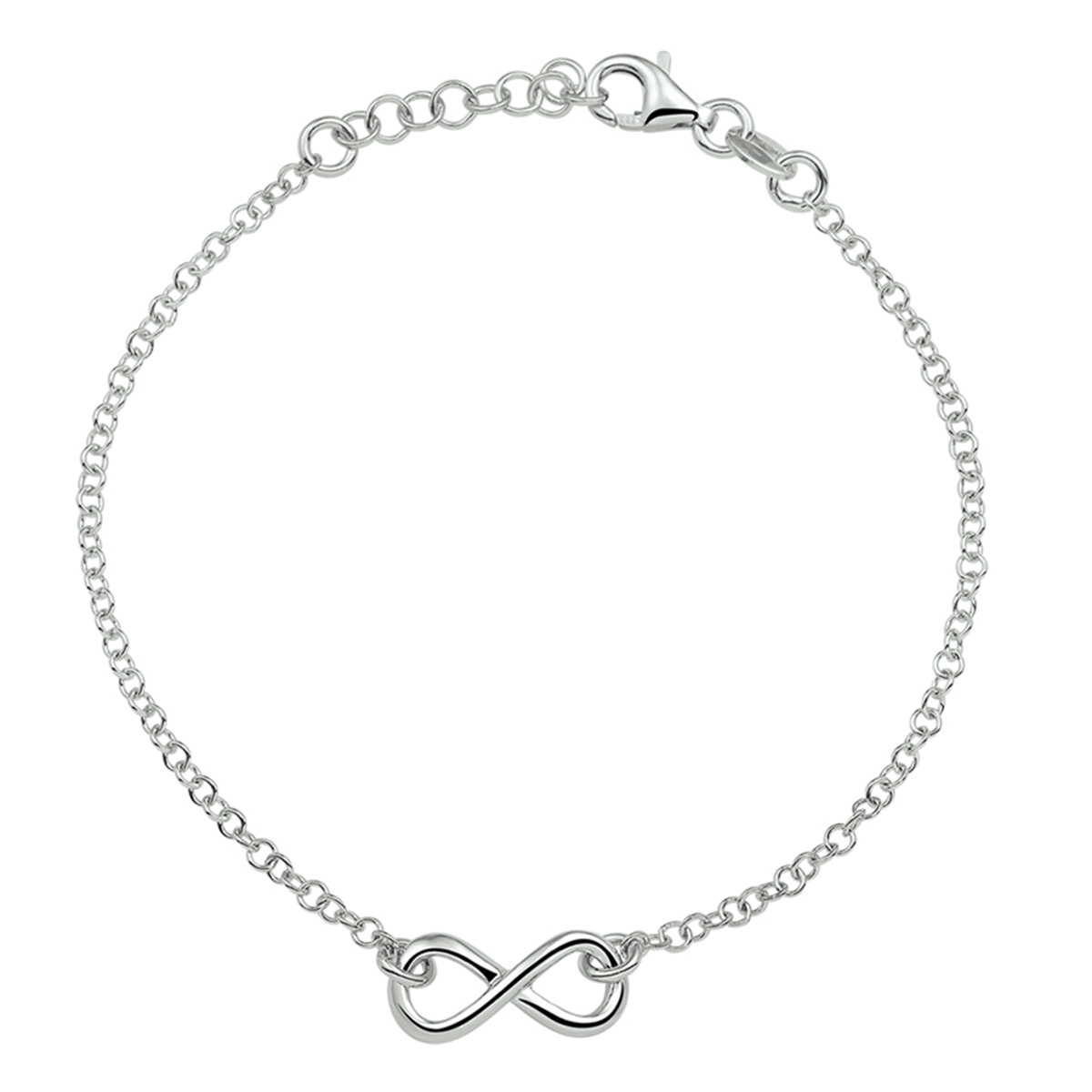 Gerhodineerd zilveren armband met infinityteken. De armband is onderdeel van een set. De lengte van de armband bedraagt 17cm met 2cm extensie. De schakelbreedte bedraagt 2.1mm.