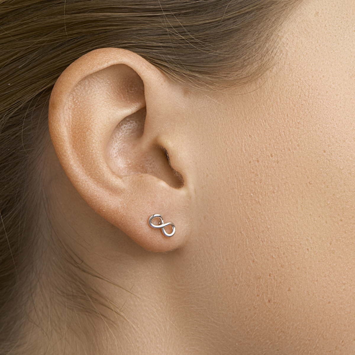 Gerhodineerd zilveren oorknoppen met infinity teken. De oorknoppen zijn onderdeel van een set.