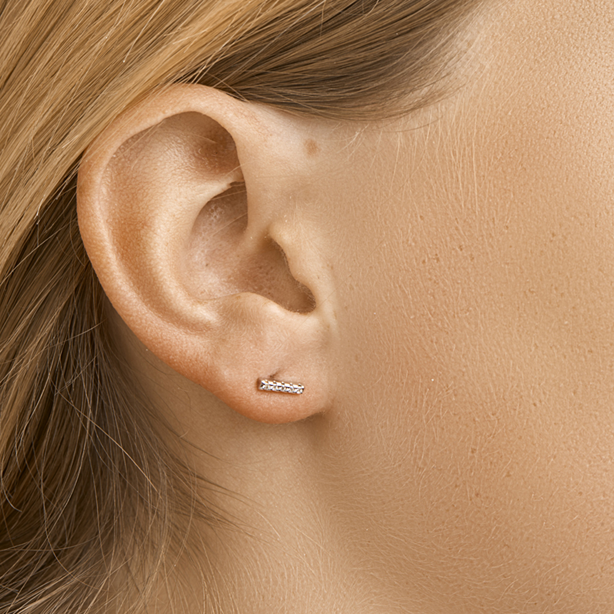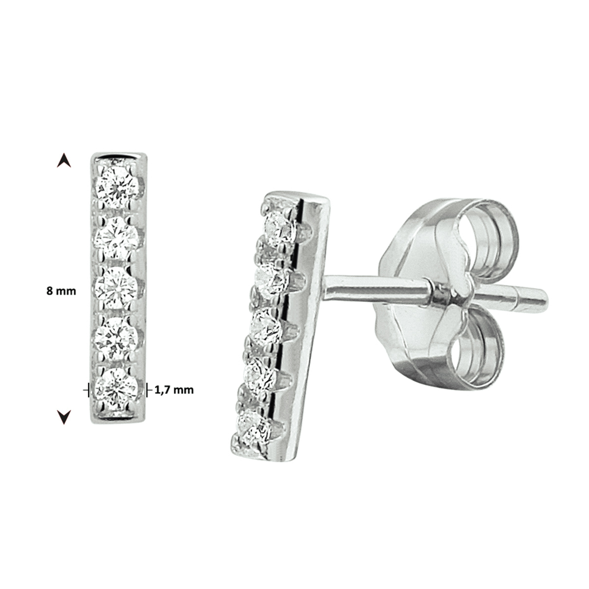 Gerhodineerd zilveren oorknoppen met een balkje en zirkonia.